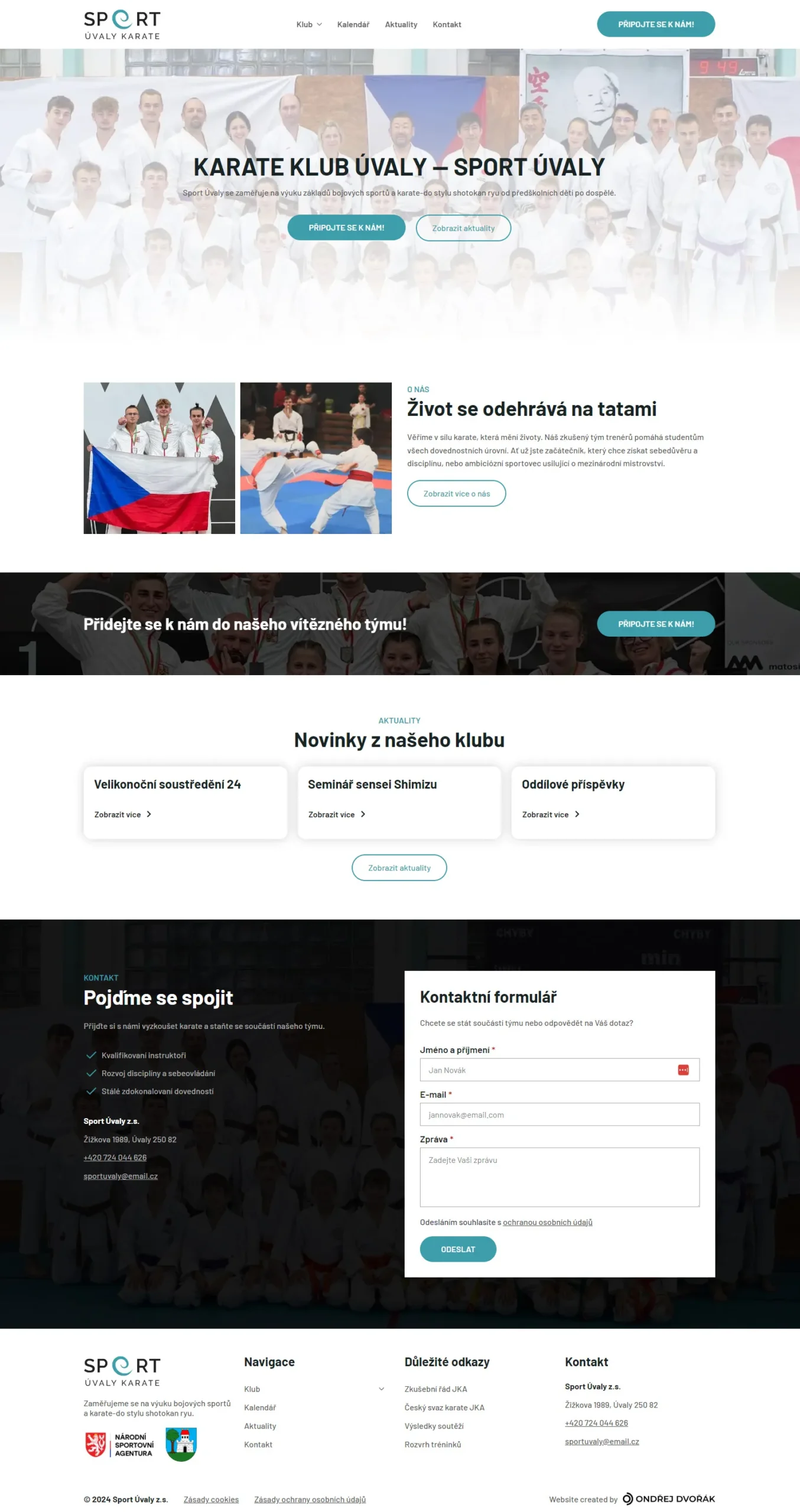 Naším cílem bylo přenést atmosféru a poslání Sport Úvaly Karate do online světa. Chceme, aby každý návštěvník webu okamžitě vnímal vášeň pro bojové umění a možnost se zapojit do klubu. Zároveň jsme chtěli poskytnout aktuálním členům lepší přehlednost a orientaci v informacích o trénincích, akcích.